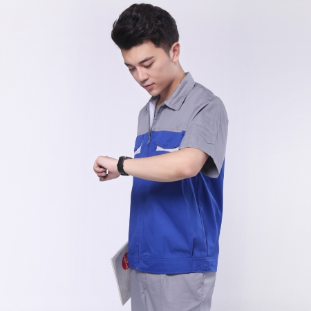 苏州鹰诺服装:灰色拼藏青夏季工作服AD089