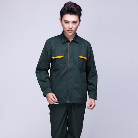 苏州鹰诺服装:墨绿拼黄色工作服AC09-3