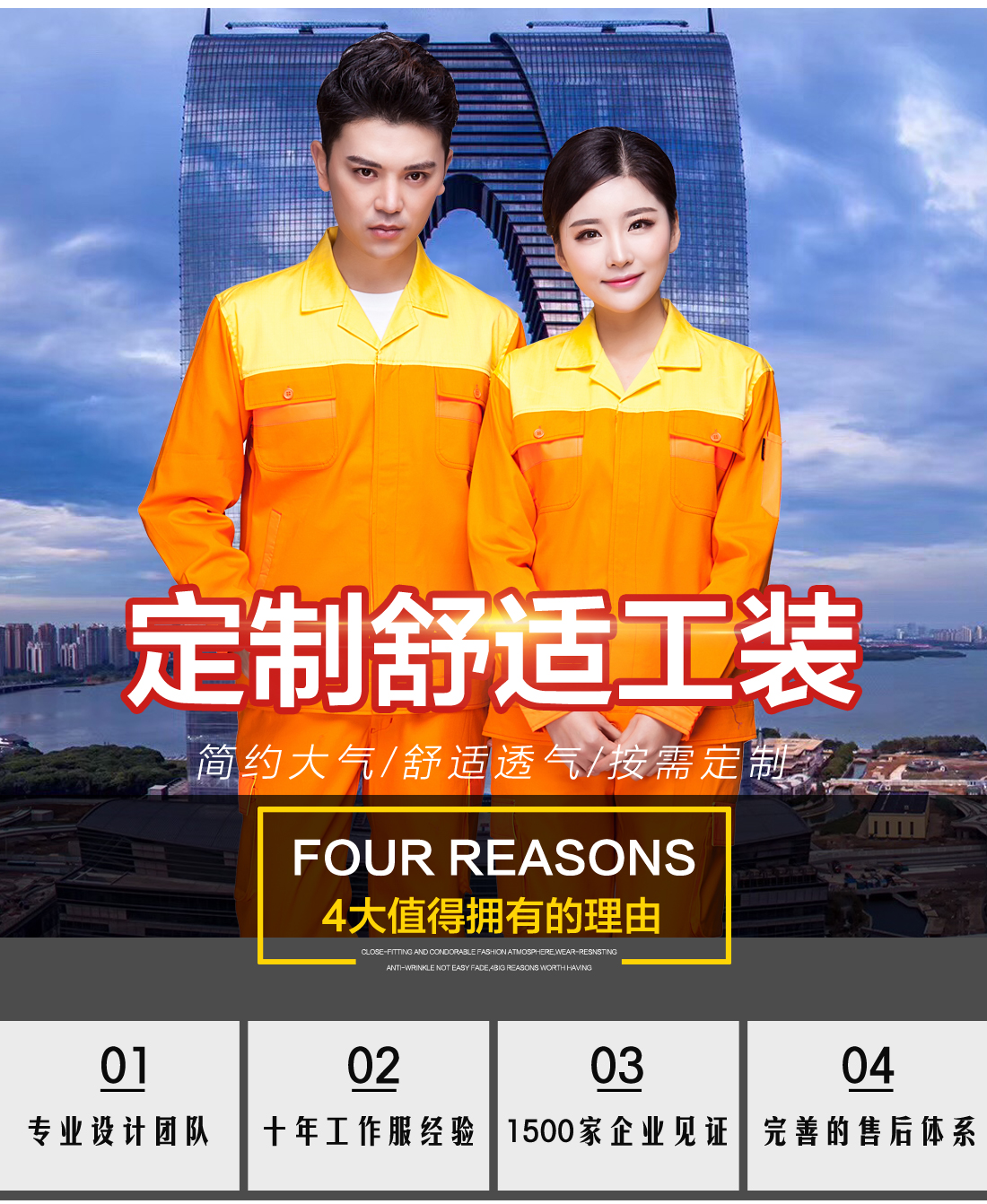 苏州鹰诺服装:蟹清拼橘黄工作服AC06-4