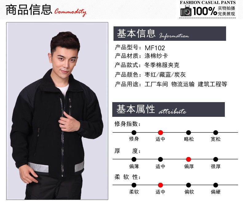 产品特点:舒适透气 亲肤舒适 超强耐磨 挺阔有型