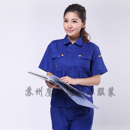 苏州鹰诺服装:艳蓝色短袖工作服AD12-4