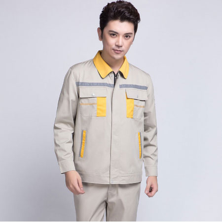 苏州鹰诺服装:黄拼驼色工作服AC20-4