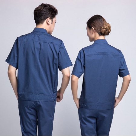 深蓝配桔红短袖工作服AD069