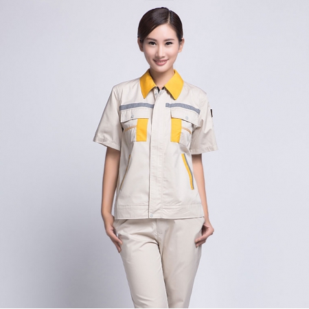 苏州鹰诺服装:黄拼驼色工作服AC17-4