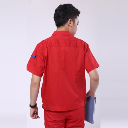 苏州鹰诺服装:红色拼藏青工作服AC13-2