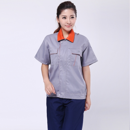 浅灰拼橘黄短袖工作服AD057-DX