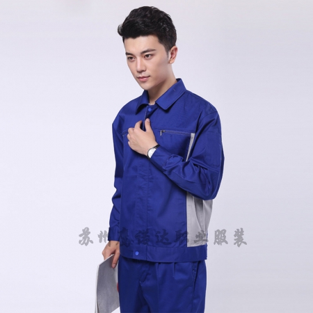 苏州鹰诺服装:艳蓝配浅灰涤棉纱卡工装服定制工装定制AC072-SC
