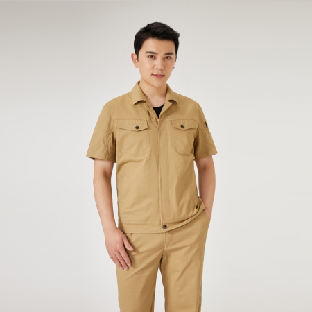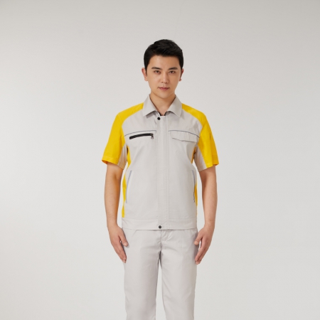 苏州鹰诺服装:米白拼浅绿色夏季工作服AD17-2-XJ