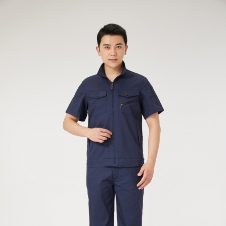苏州鹰诺服装:浅灰拼艳蓝色工作服AD2204-4