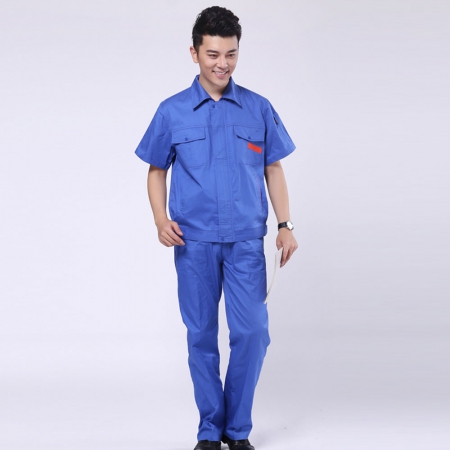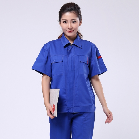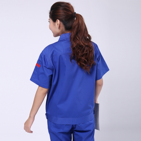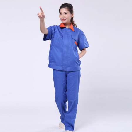 苏州鹰诺服装:艳蓝配浅灰短袖工作服AD081-DX