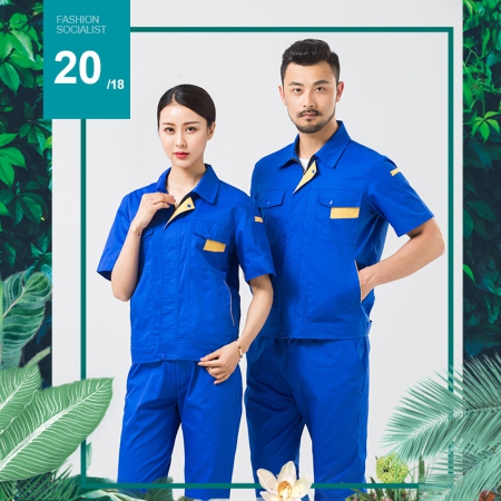苏州鹰诺服装:艳蓝配浅灰夏季工衣定制AD081-XJ