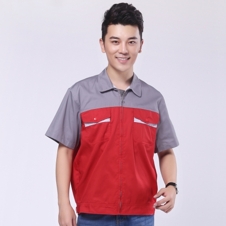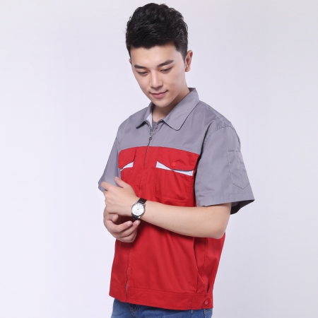 苏州鹰诺服装:红色拼藏青工作服AC13-2