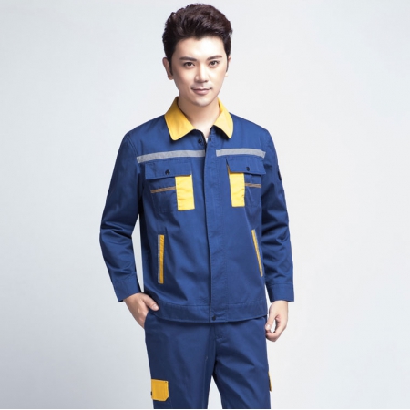 卡其拼藏青涤棉纱卡春秋工衣AC109