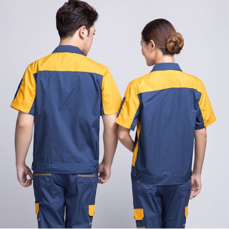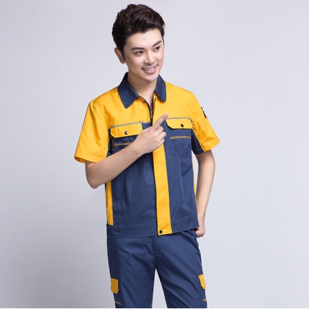苏州鹰诺服装:黄拼驼色汽修工作服AC20-4
