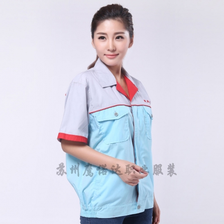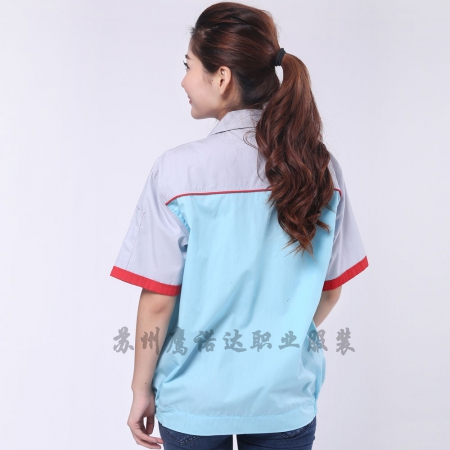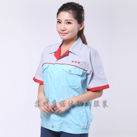 苏州鹰诺服装:湖蓝拼浅灰工作服AC20-2