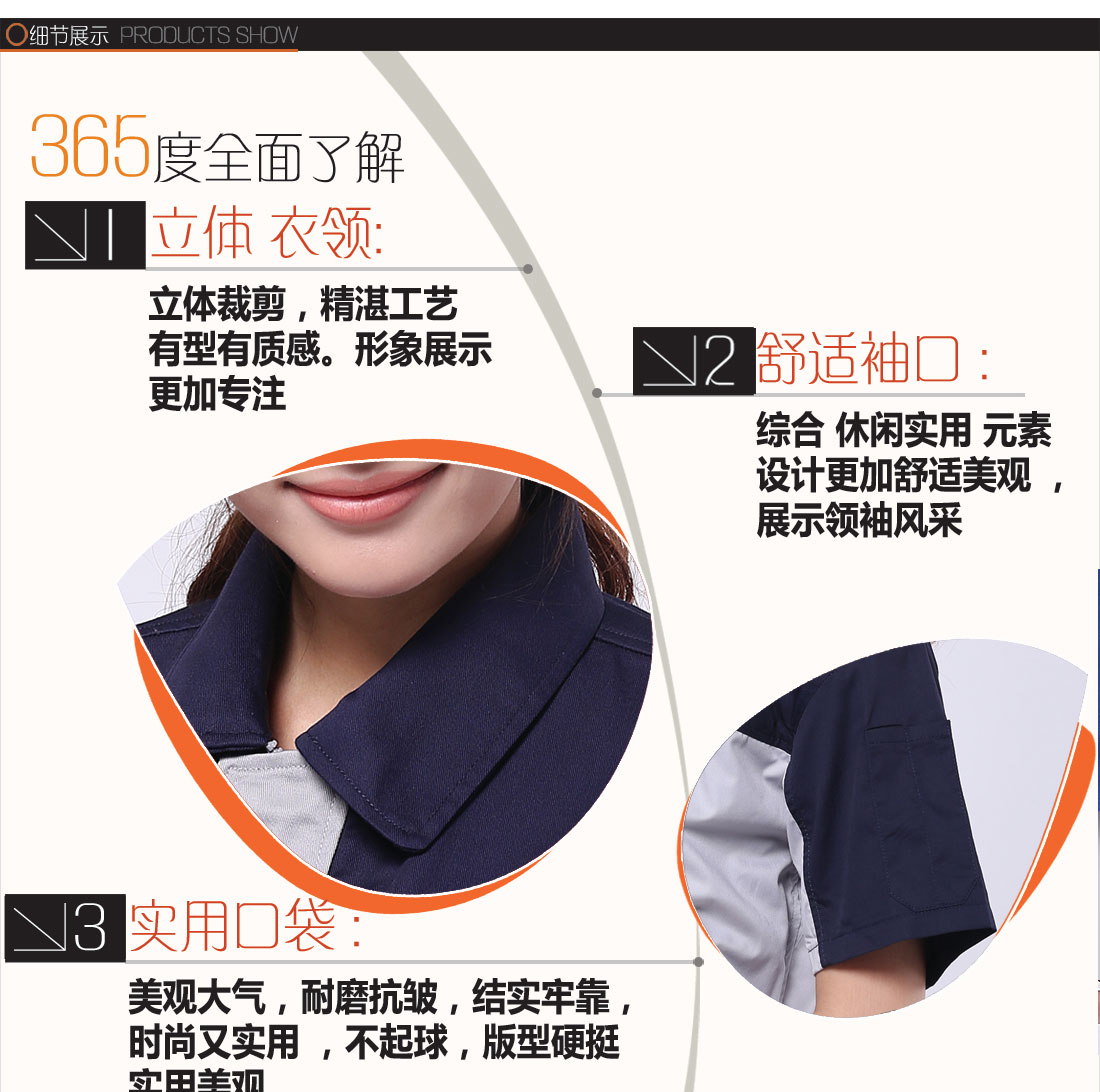 苏州鹰诺服装:米色拼藏青CVC纱卡春秋工衣AC112