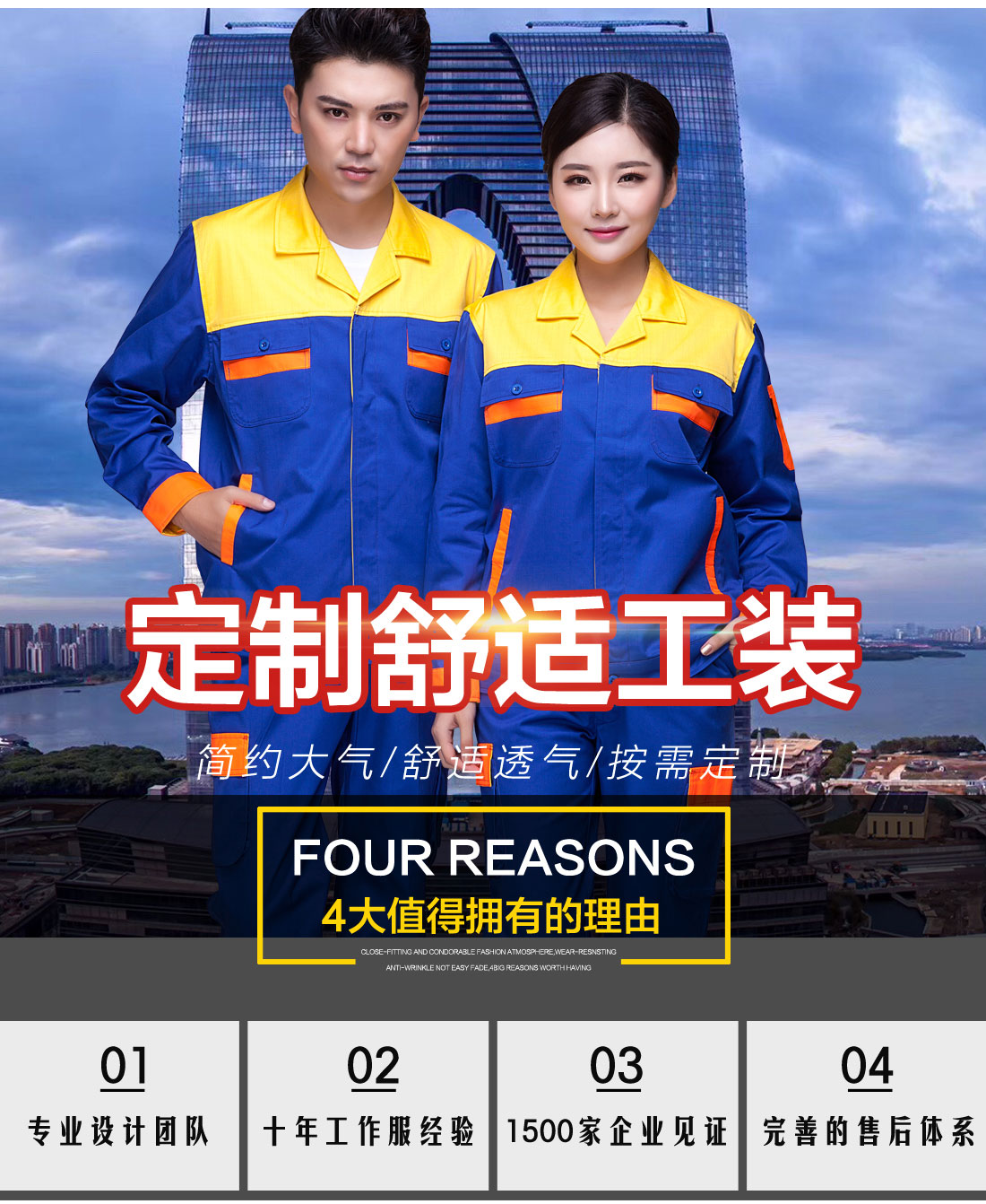艳蓝配浅灰工作服AC072