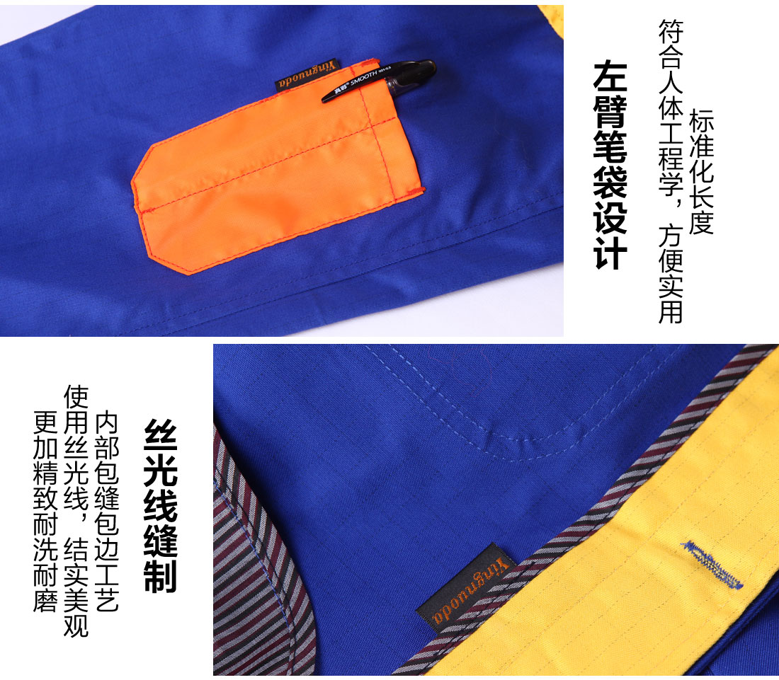 苏州鹰诺服装:蟹清拼橘黄工作服AC06-4