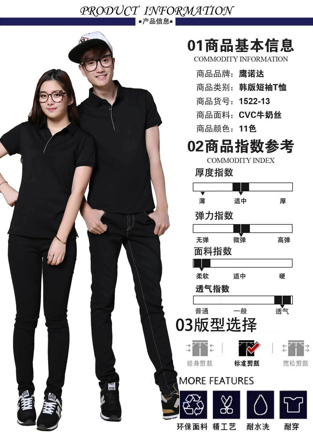 - 游客于 2018-04-16 09:43:23 发表黑色翻领CVC牛奶丝上海T恤衫ID1522-12