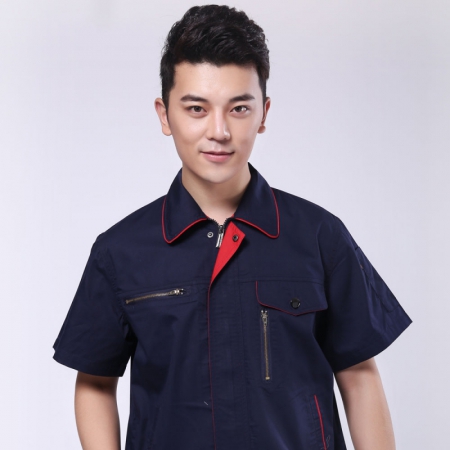 苏州鹰诺服装:银灰拼藏青夏季工装工作服AD084