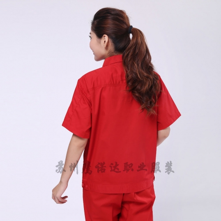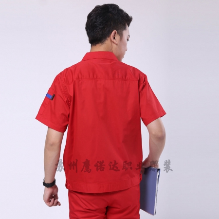 苏州鹰诺服装:藏青拼大红夏季工作服AD103