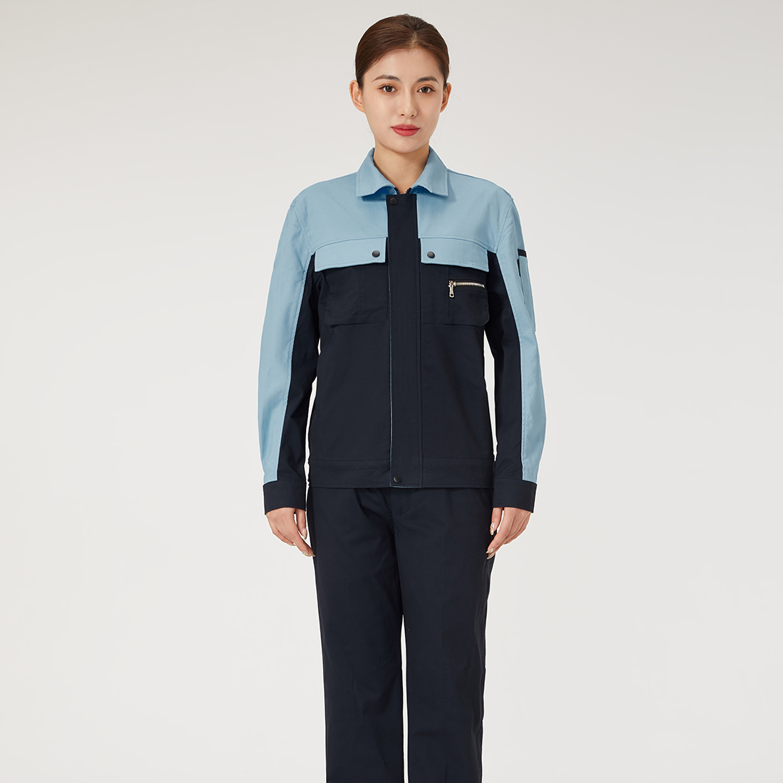 米色拼藏青工作服AC112