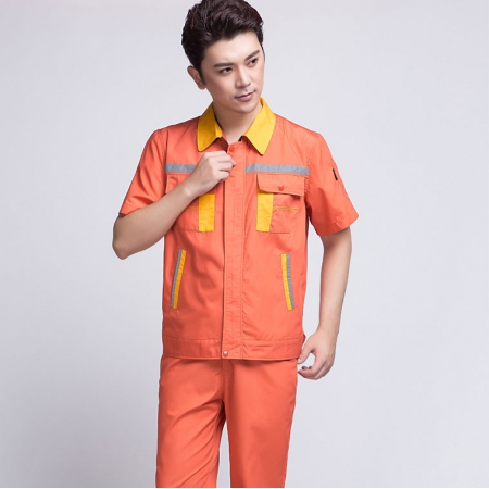 苏州鹰诺服装:橘黄拼黄色短袖工作服AD09-5