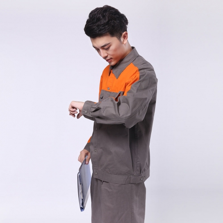 苏州鹰诺服装:中灰拼橘黄色春秋工作服AC116-CQ