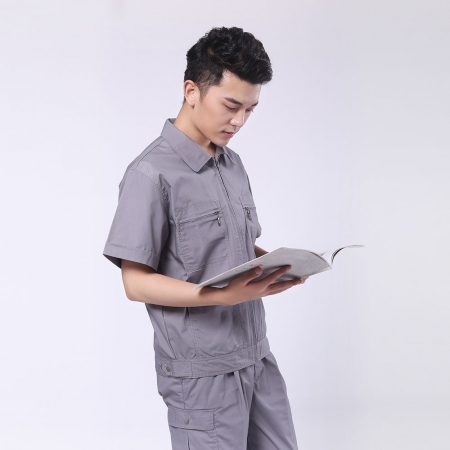 苏州鹰诺服装:铁灰色短袖工作服AD118-DX