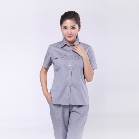 苏州鹰诺服装:浅灰色短袖工作服AD119-DX
