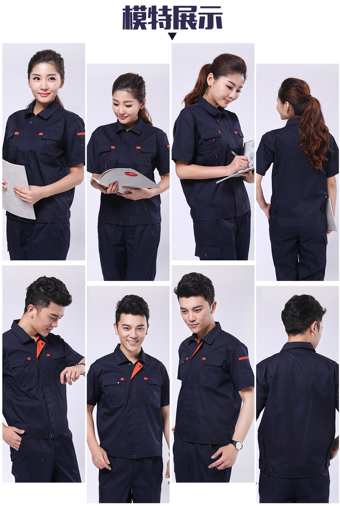 - 游客于 2018-08-11 17:39:08 发表深蓝配桔红夏季工作服套装AD069