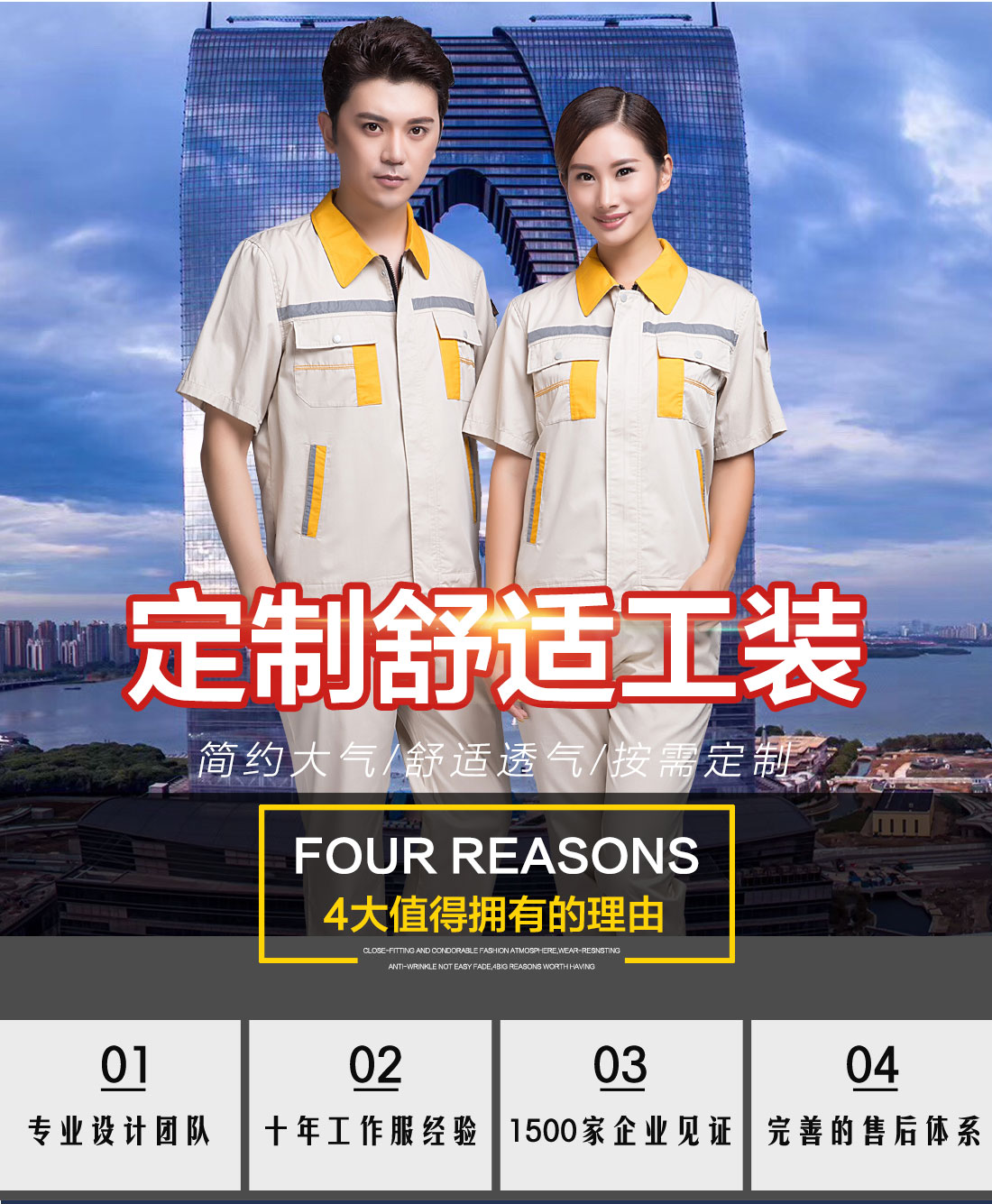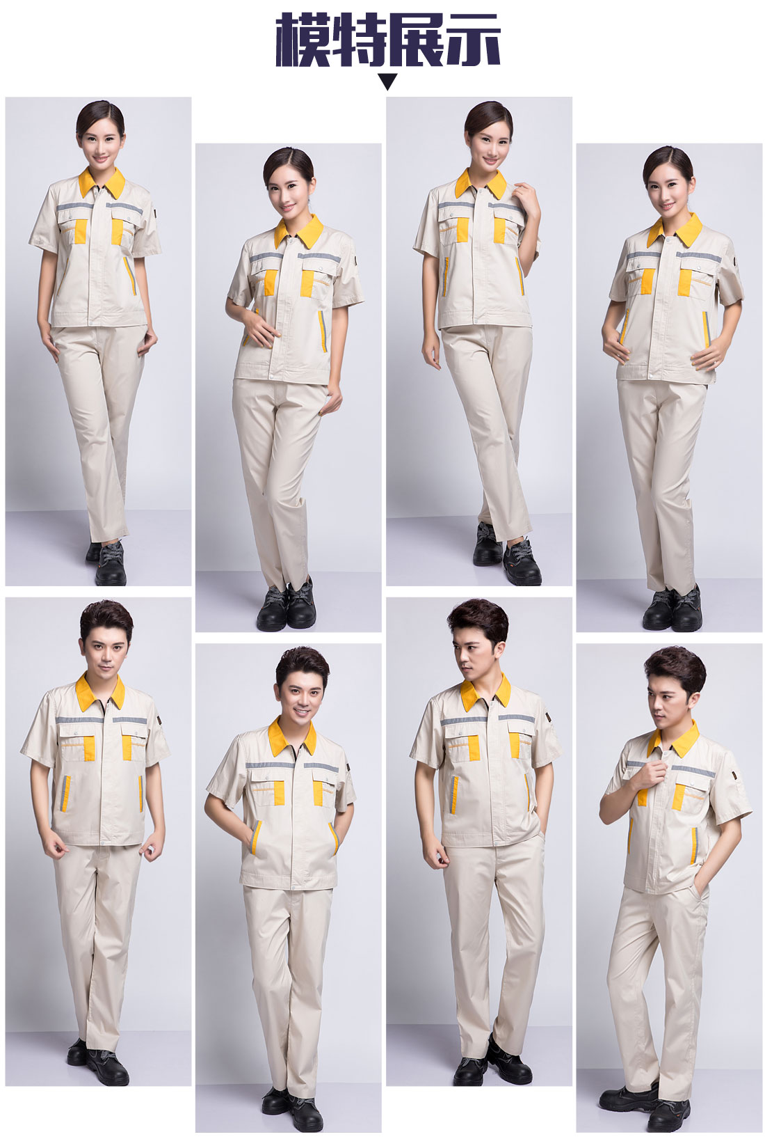 - 游客于 2018-07-23 09:18:44 发表米色拼黄色短袖工作服AD09-1