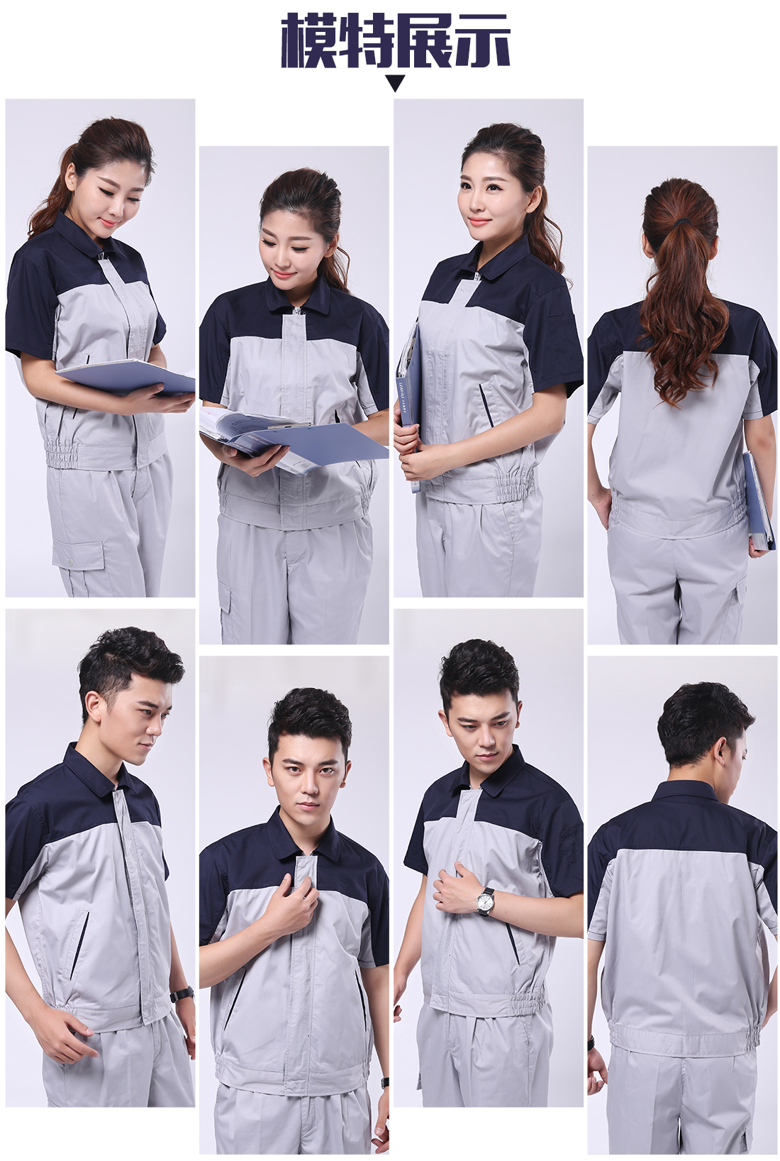 深蓝配浅灰夏天工作服套装AD079