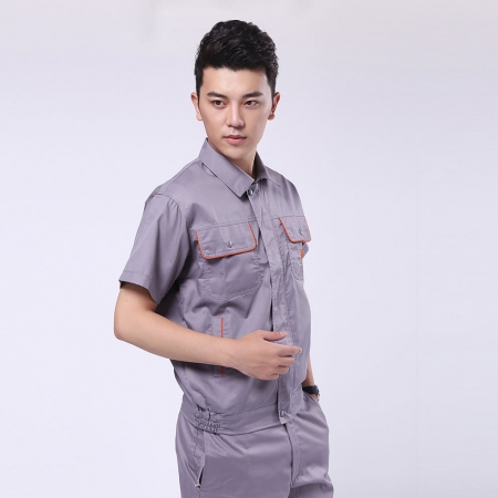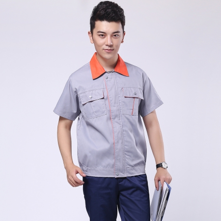 浅灰拼橘黄短袖工作服AD057-DX
