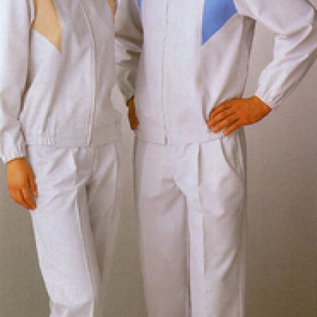 苏州鹰诺服装:米色拼藏青防静电服AD087-JD