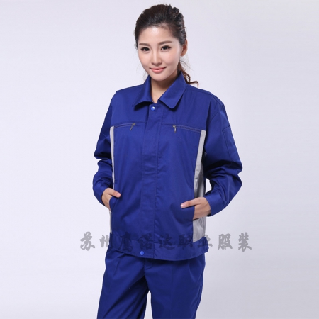 苏州鹰诺服装:艳蓝涤棉纱卡生产加工工作服AC082-SC