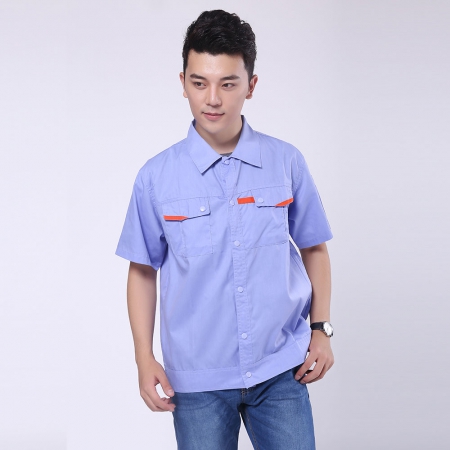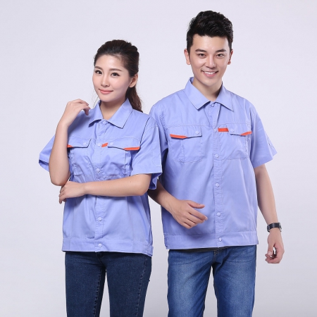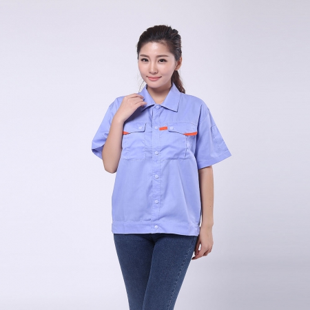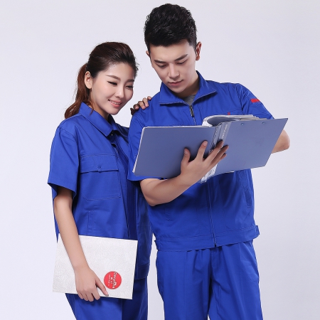 苏州鹰诺服装:艳蓝配浅灰短袖工作服AD081-DX