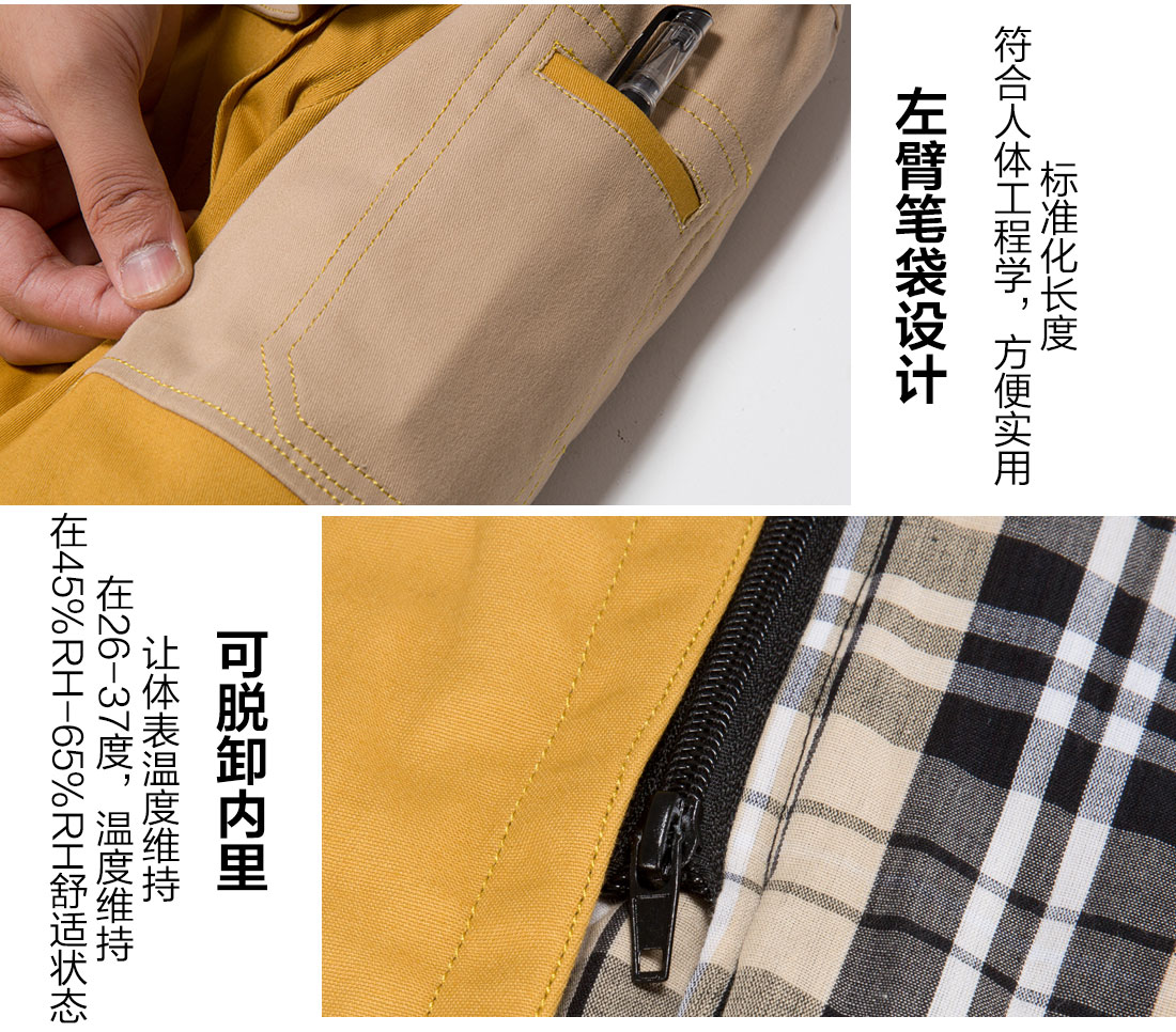 - 游客于 2018-04-14 12:49:39 发表苏州鹰诺服装:冬季服装厂家冬季工作服黄拼灰色MF20-4