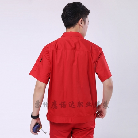 苏州鹰诺服装:大红配浅灰春秋工作服AC078