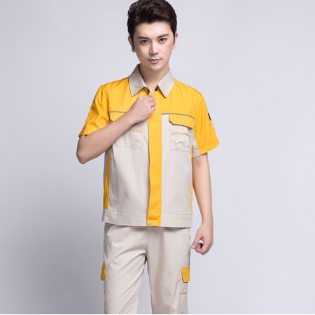 苏州鹰诺服装:米色拼黄工作服AC08-1