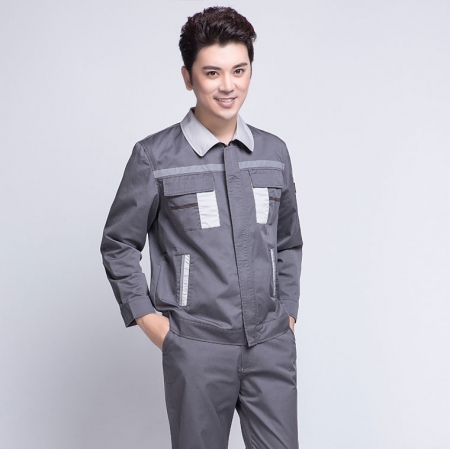 苏州鹰诺服装:浅灰拼中灰全棉秋季工作服AC06-1