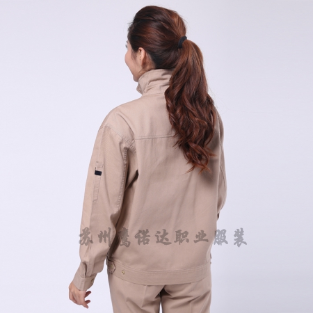 苏州鹰诺服装:驼灰拼黄色春秋工作服AC111
