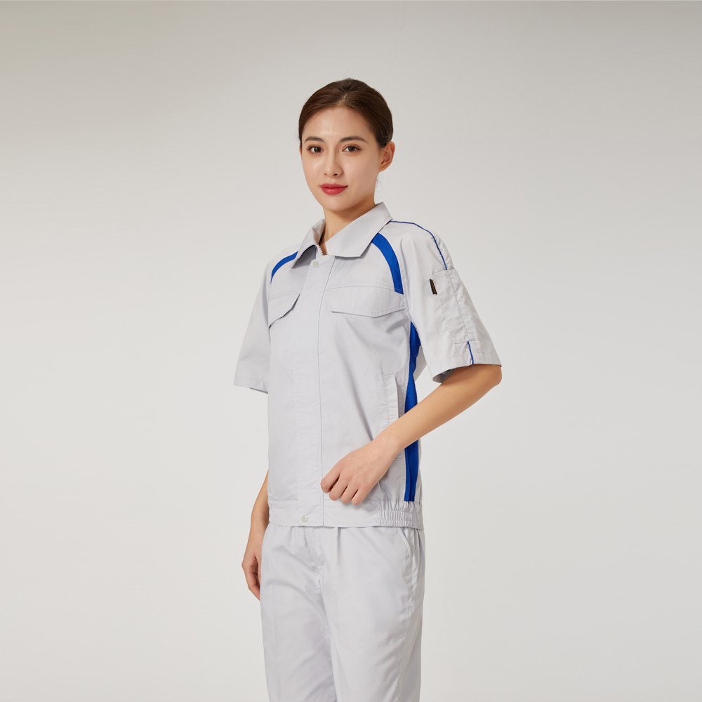 苏州鹰诺服装:银灰拼藏青夏季工作服AD084